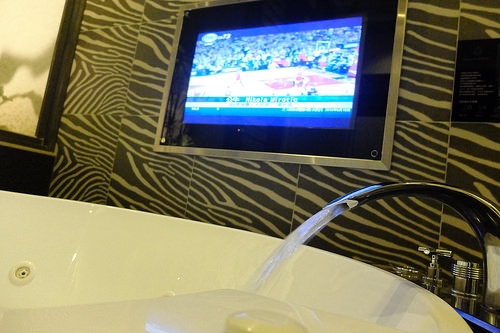 剛好邊泡邊看NBA球賽