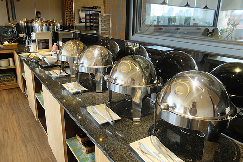 餐廳是中西式合併的自助式早餐,有麵包區