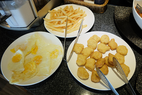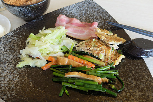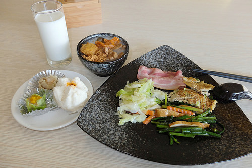 夾了四種熱食,培根給得很豪邁啊,只是盤子太大,不然我裝的其實不少