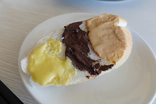 烤麵包只好一塊麵包塗三種醬,不然吃不下了