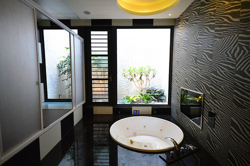 窗外也是對外的天井,所以陽光進的來,但是也不會有人看到,可以安心泡澡