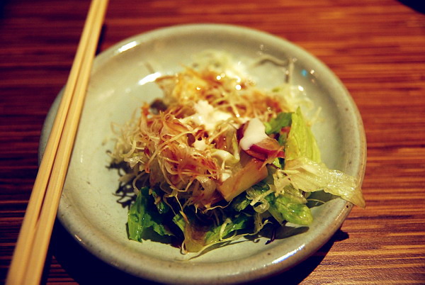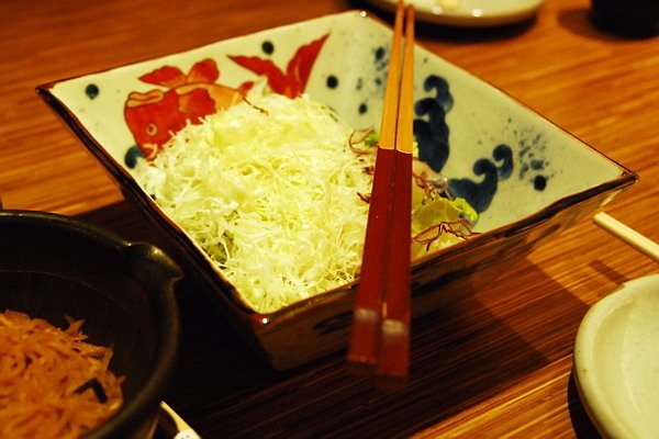 高麗菜絲有兩種醬可以加,一種紫蘇醬,另一種柚子醋醬